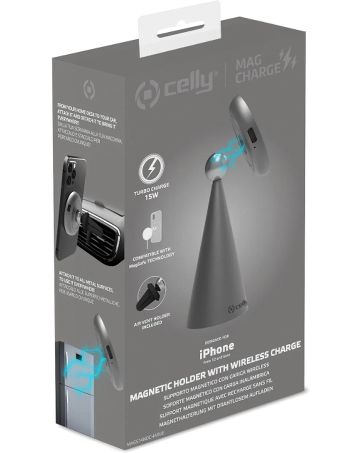 Haal het maximale uit je iPhone met de grijze Celly MagStandCharge – een stijlvolle MagSafe houder én draadloze oplader in één. Perfect voor thuis, op kantoor of in de auto.