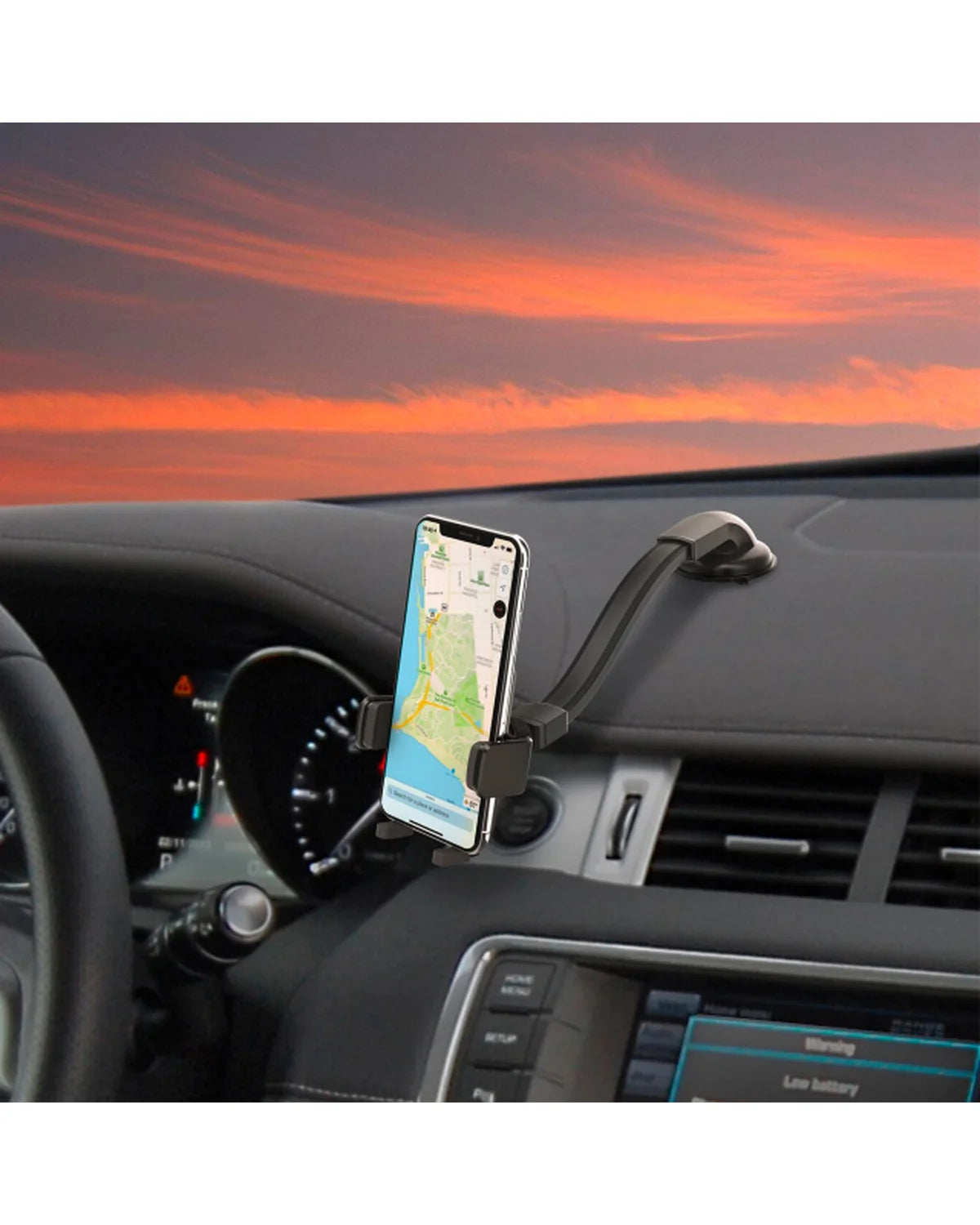 Wat deze houder uniek maakt, is de extra lange en flexibele arm met metalen kern die trillingen opvangt en je toestel stabiel houdt, zelfs op een hobbelige weg.