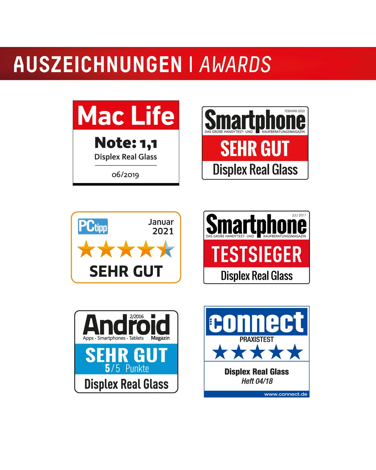 Inhoud verpakking: 1x Displex Real Glass Full Cover Screenprotector, 1x EASY-ON® Eco montageframe, 1x Microvezeldoekje, 1x Reinigingsdoekje, 1x Stofverwijderaar