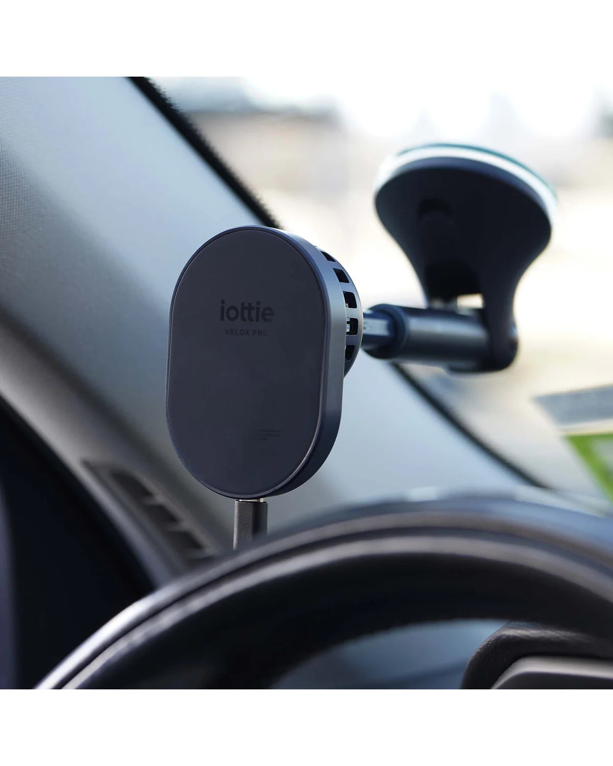 De iOttie Velox Pro is een premium draadloze autohouder in zwart, geschikt voor dashboard en ruit, en perfect voor MagSafe-compatibele smartphones. Dankzij de sterke magnetische uitlijning bevestig je jouw toestel direct en veilig.