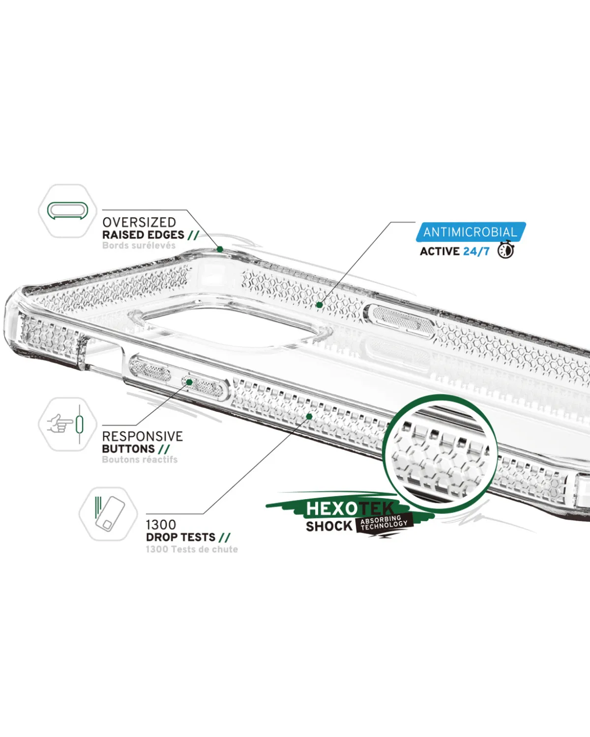 Unieke kenmerken: Air Pocket-technologie, Hexotek bescherming voor extra schokabsorptie, Military grade-certificering