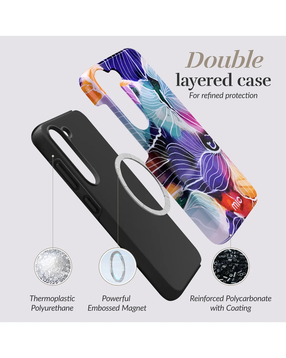 Dit smartphone hoesje biedt een perfecte mix van creativiteit en bescherming. De hybride constructie dempt schokken effectief, en dankzij de MagSafe-functionaliteit klik je moeiteloos accessoires vast en laad je direct op. Het slanke profiel, de prettige grip en de verhoogde randen zorgen voor extra gebruikscomfort en veiligheid tijdens dagelijks gebruik.