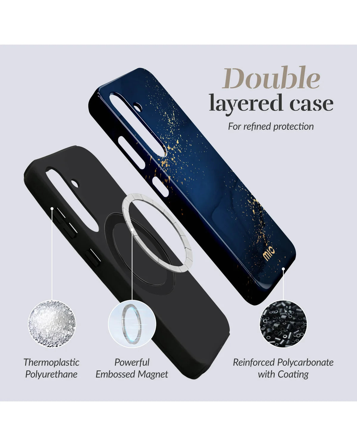 Extra eigenschappen: Sterke magneetring, microvezel voering, camerabescherming, slank design