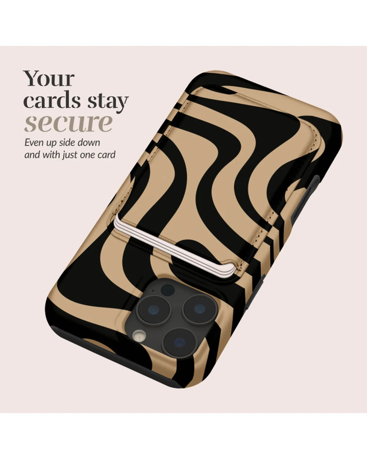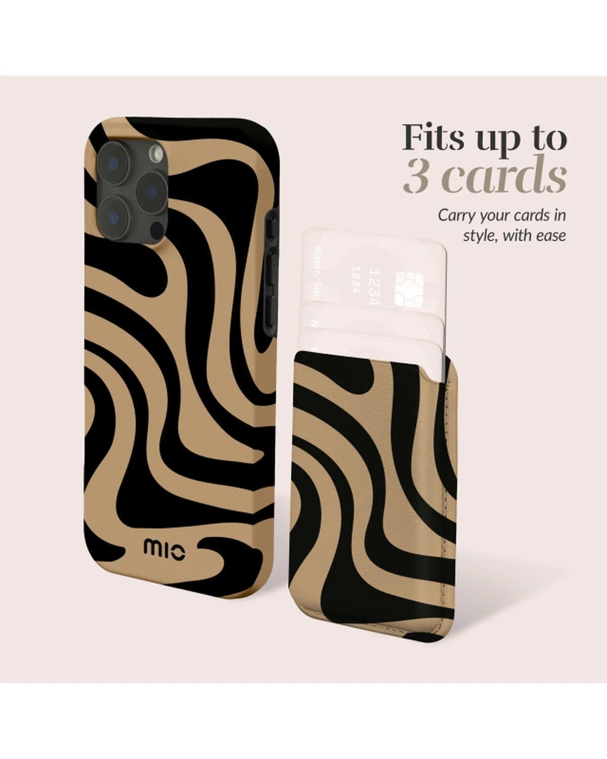 De MIO Swirl MagSafe-kaarthouder maakt van je smartphone een echte eyecatcher. Met zijn golvende zwart-beige print voeg je moeiteloos stijl toe aan je dagelijkse essentials.