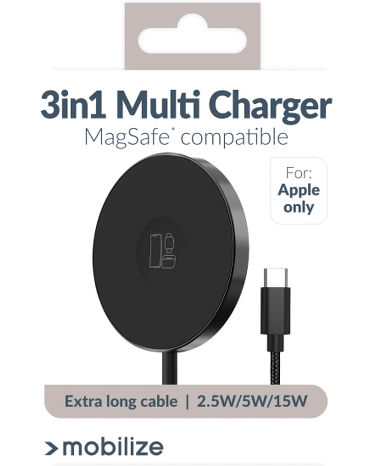 Mobilize 3-in-1 MagSafe Draadloze Lader 15W – Zwart