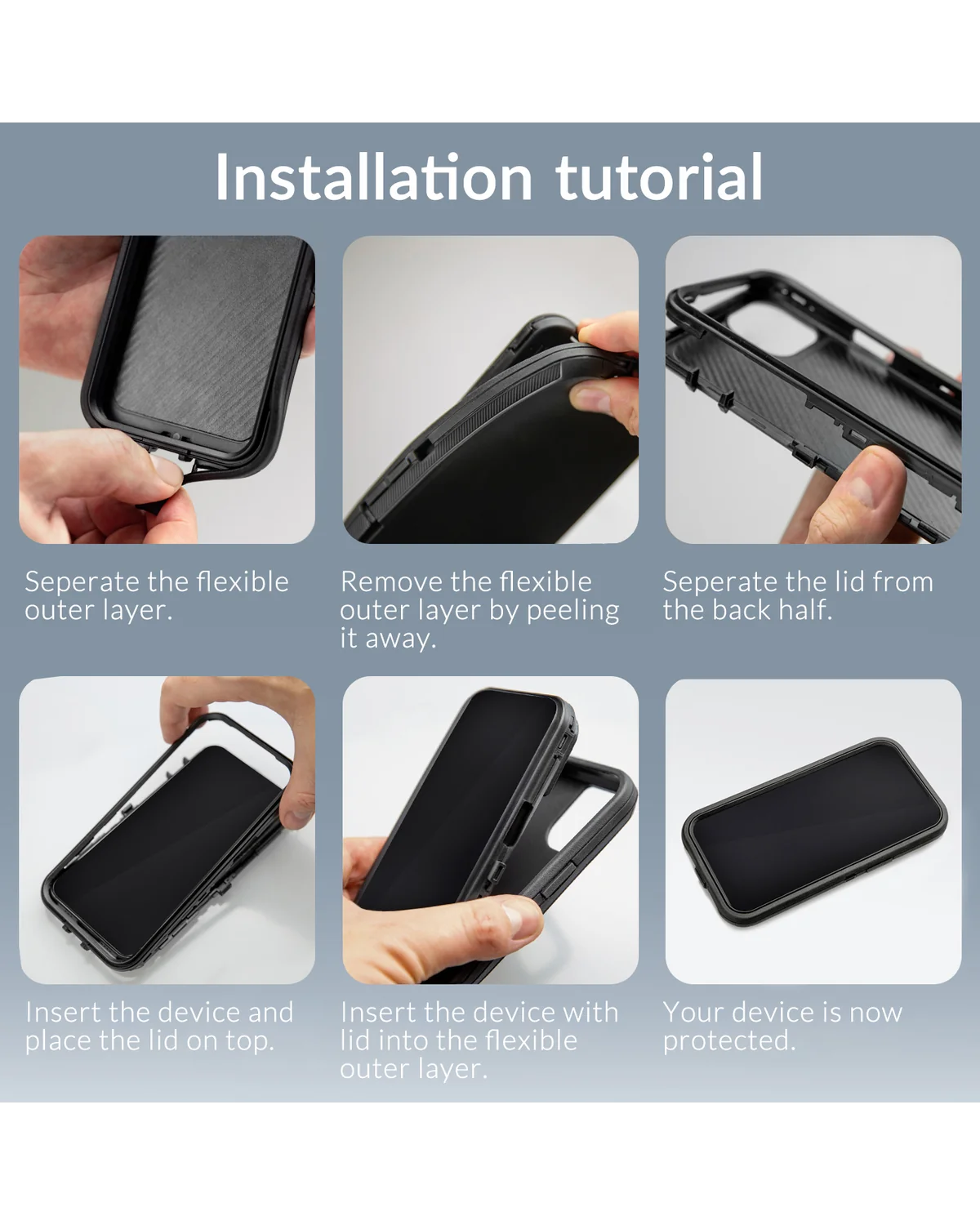 Deze heavy-duty smartphone cover combineert een harde achterkant met flexibele randen voor optimale schokabsorptie. Dankzij het doordachte ontwerp zijn alle knoppen en poorten gemakkelijk bereikbaar, zonder concessies te doen aan gebruiksgemak of bescherming.