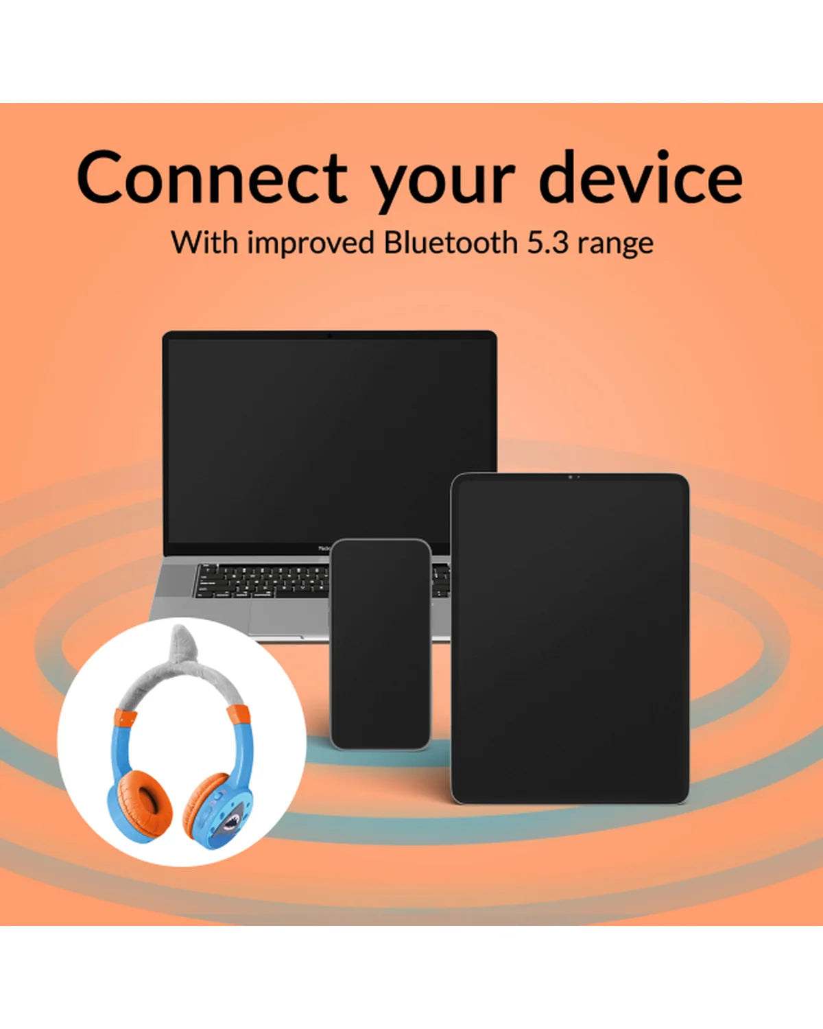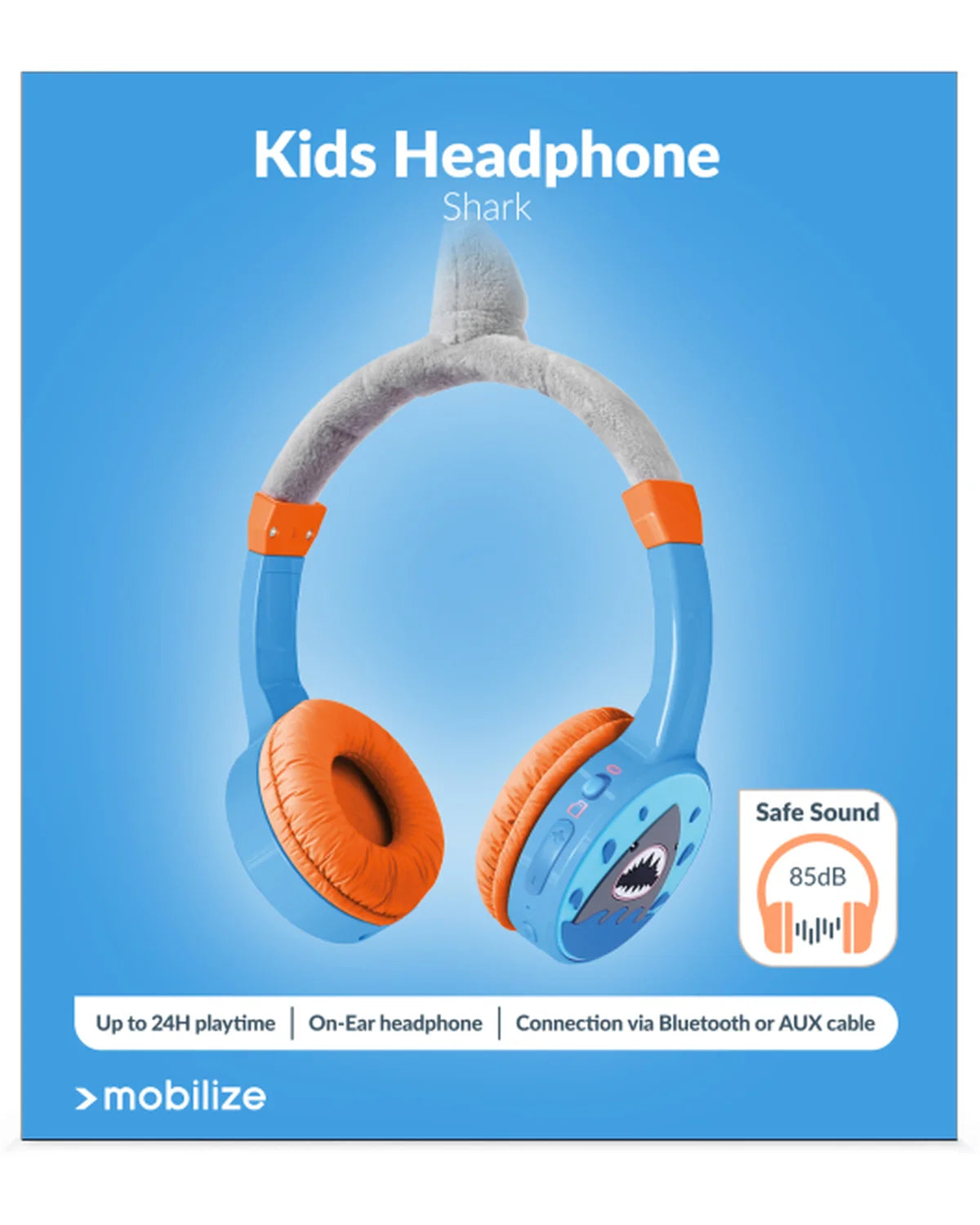 Laat kinderen veilig luisteren met deze draadloze shark koptelefoon van Mobilize. Tot 24 uur batterij, Bluetooth 5.3, 85 dB volume limiter en AUX – ideaal voor thuis of onderweg.