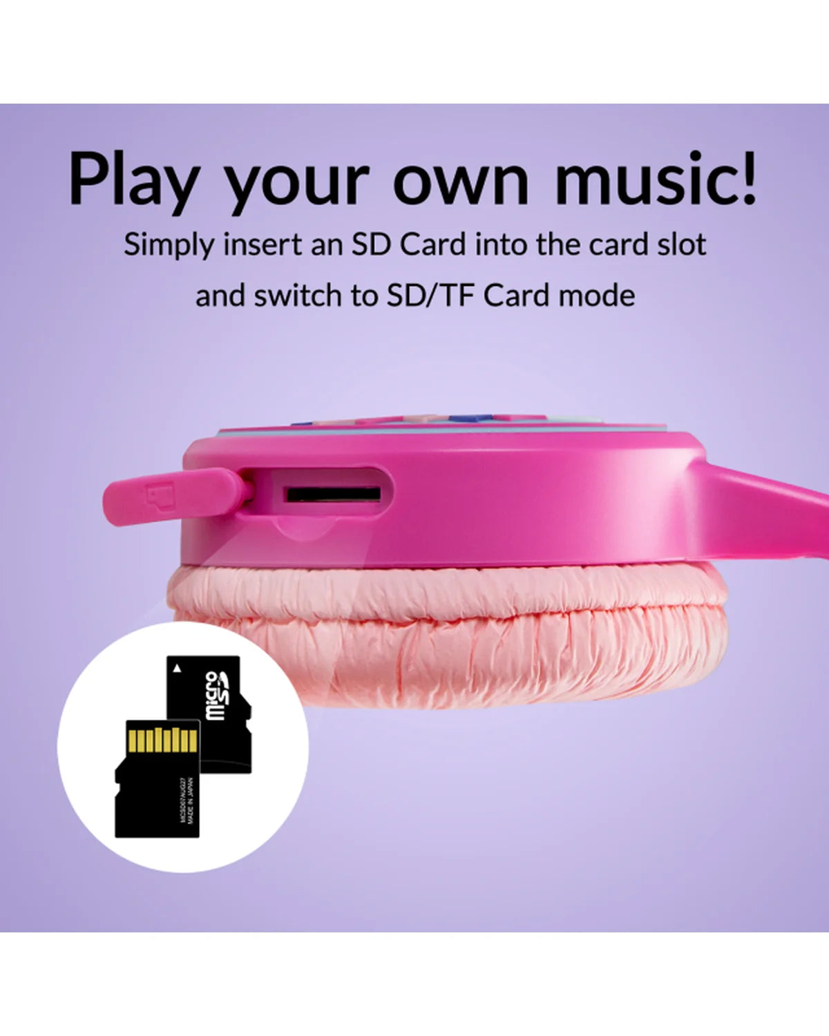 Deze kleurrijke unicorn-hoofdtelefoon is een feest voor jonge luisteraars. De zachte oorkussens en geluidslimiet van 85 dB beschermen jonge oren, terwijl Bluetooth 5.3 zorgt voor een stabiele draadloze verbinding tot 10 meter. Is de batterij leeg? Sluit eenvoudig de meegeleverde AUX-kabel aan. Dankzij de deel-functie luister je samen met een tweede headset naar dezelfde content.