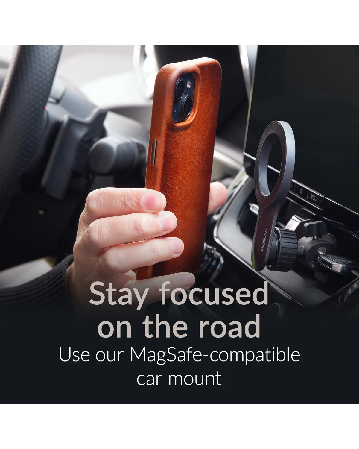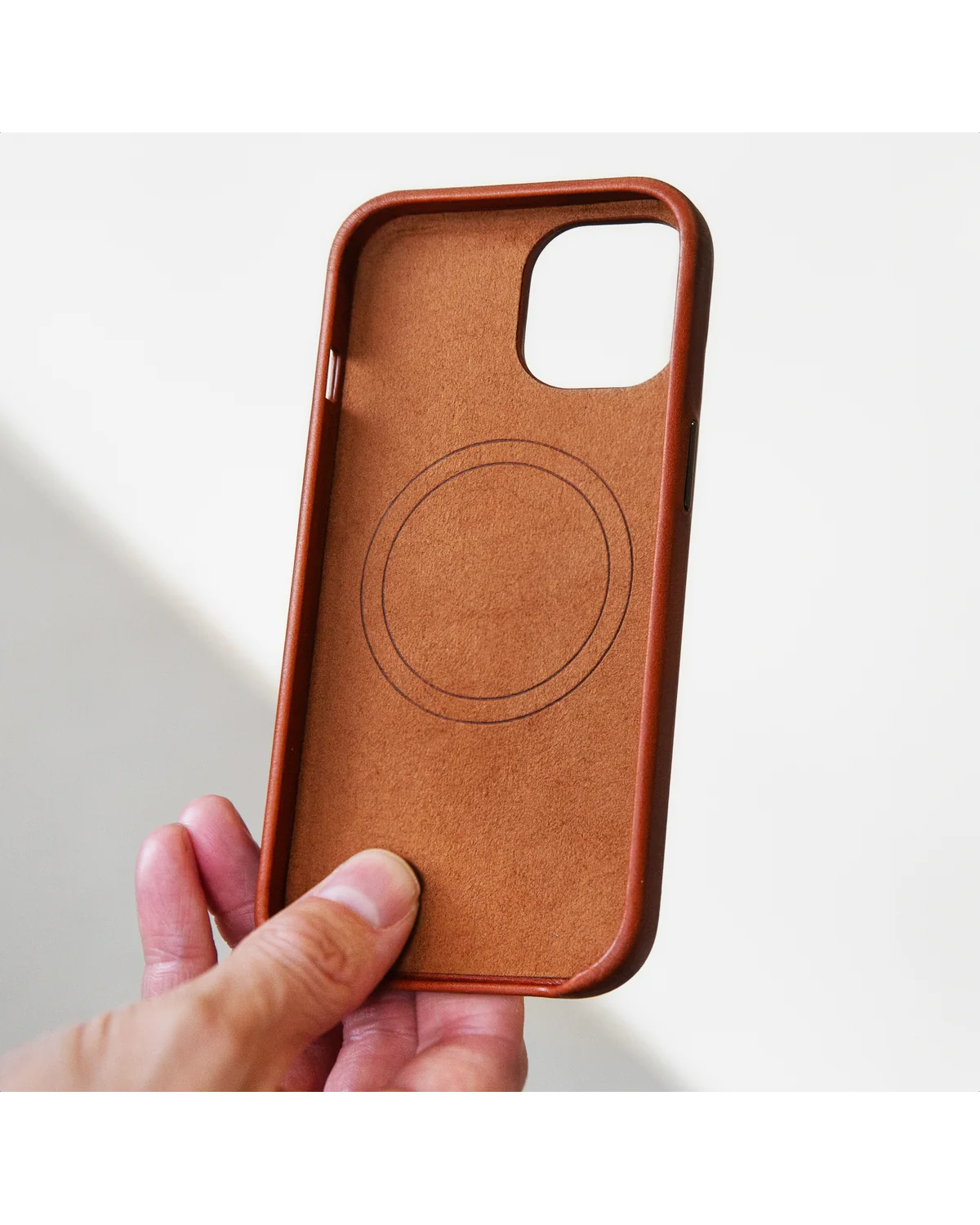 De buitenzijde van deze case is vervaardigd uit hoogwaardig leer in een luxe burned cognac kleur, met een natuurlijke structuur die na verloop van tijd alleen maar mooier wordt. Binnenin voorkomt een zachte microvezel voering krassen op je toestel. Dankzij de MagSafe-compatibiliteit klik je accessoires zoals opladers, autohouders of pasjeshouders moeiteloos vast, zonder dat je de hoes hoeft te verwijderen. Alle knoppen en poorten blijven daarbij volledig toegankelijk.