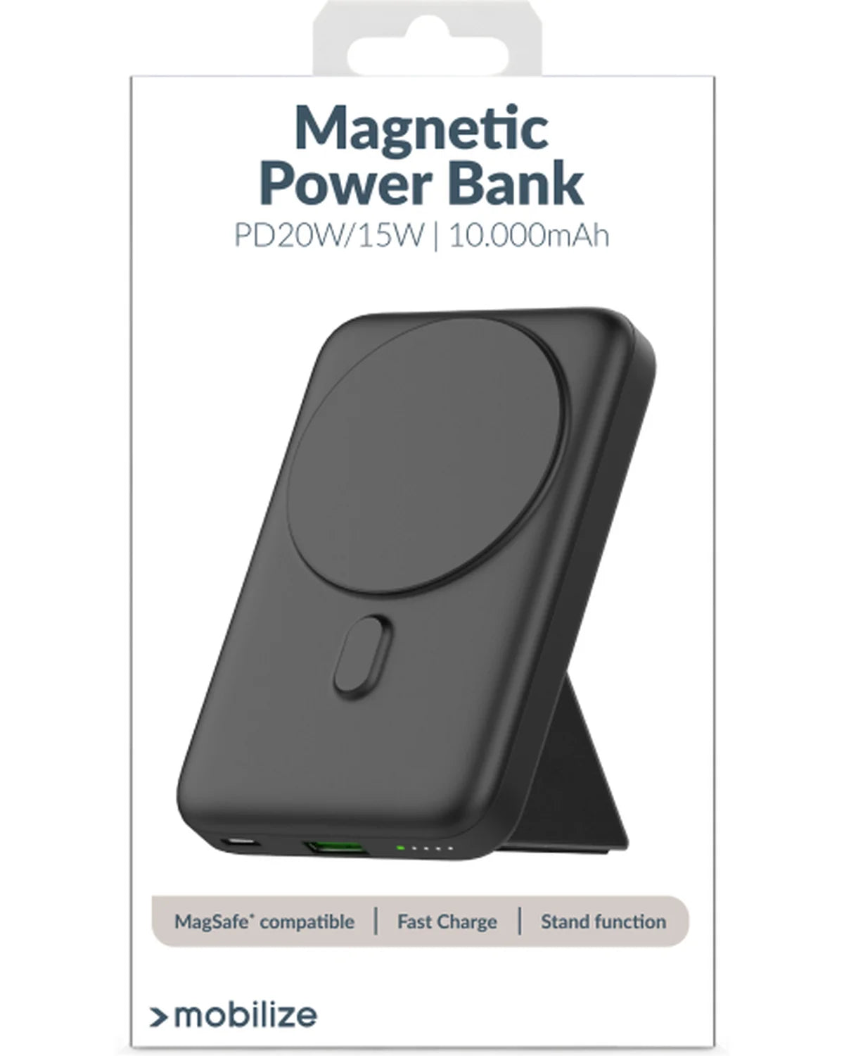 Laad stijlvol op met de Mobilize Magsafe Powerbank 10000mAh – 15W – Zwart. Magnetisch, draadloos en bedraad laden met 20W USB-C en ingebouwde standaard.