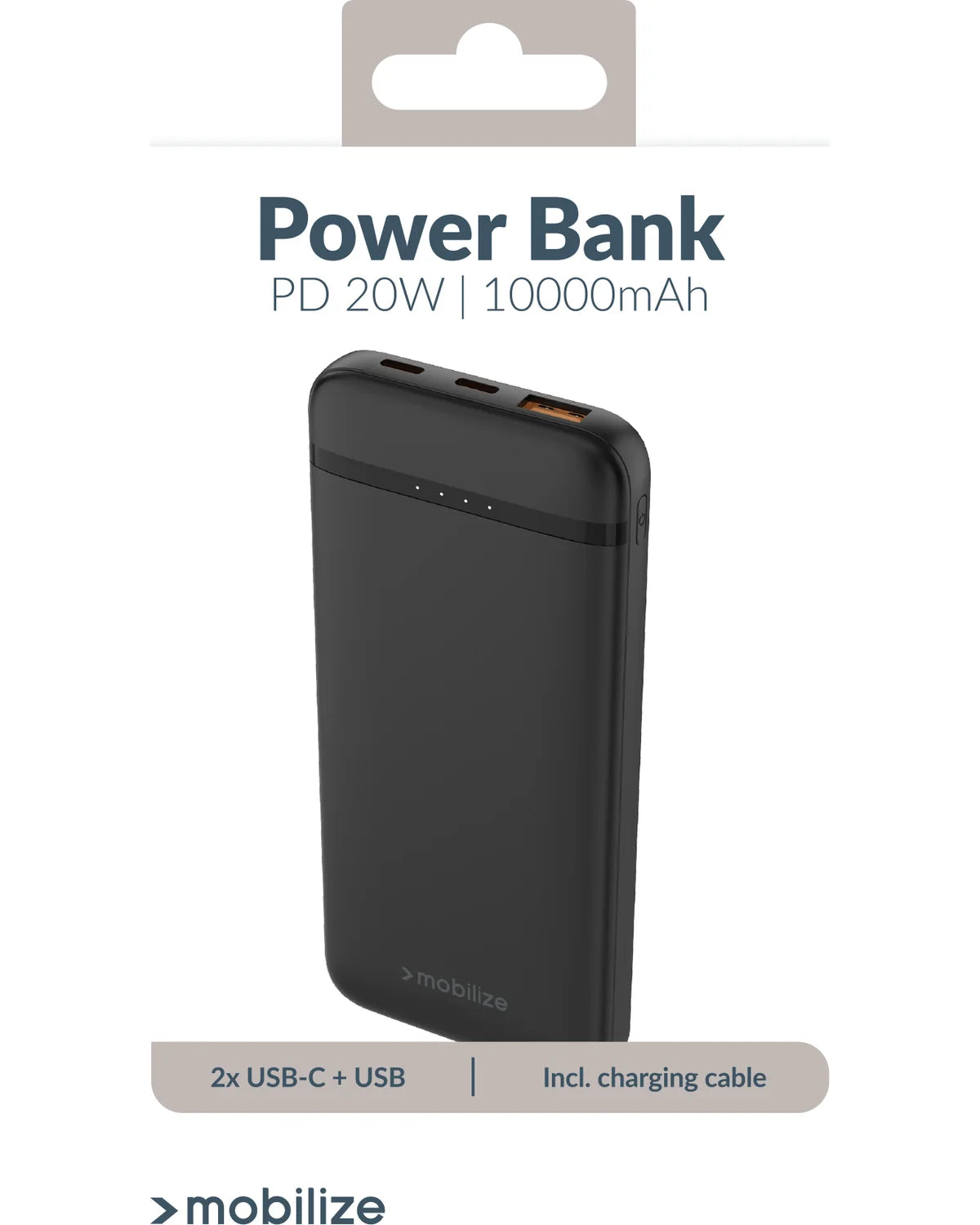 Ga zorgeloos op pad met de Mobilize 10.000mAh powerbank. Krachtig, slank en voorzien van 20W Power Delivery voor razendsnel opladen via USB-C en USB-A.