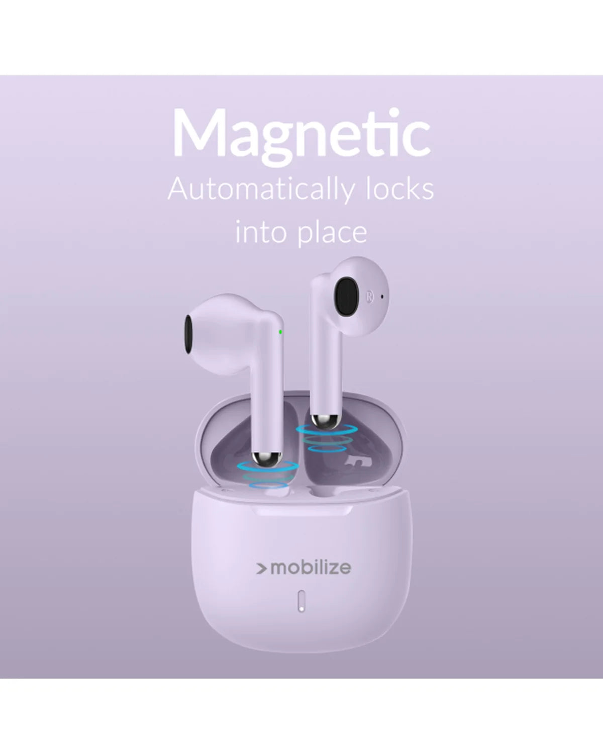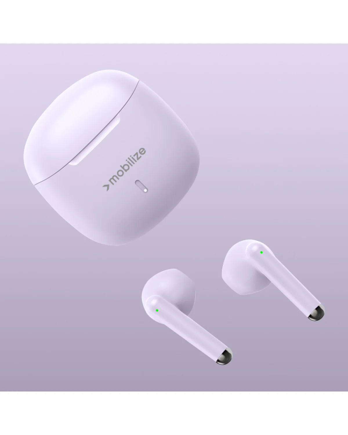Voeg een vleugje kleur toe aan je dag met deze pastel paarse in-ear oordopjes van Mobilize. Tot 20 uur luistertijd met oplaadcase, IPX4-bescherming, touchbediening en Bluetooth 5.3 – perfect voor onderweg, thuis of op werk.