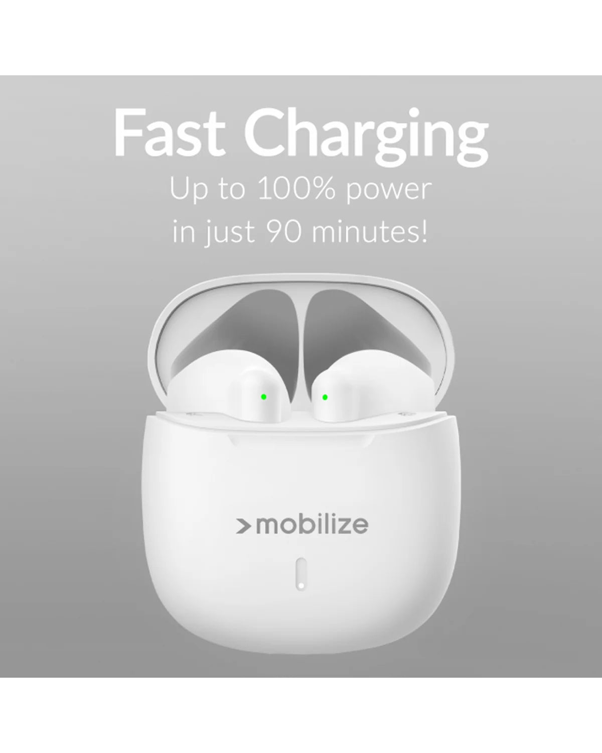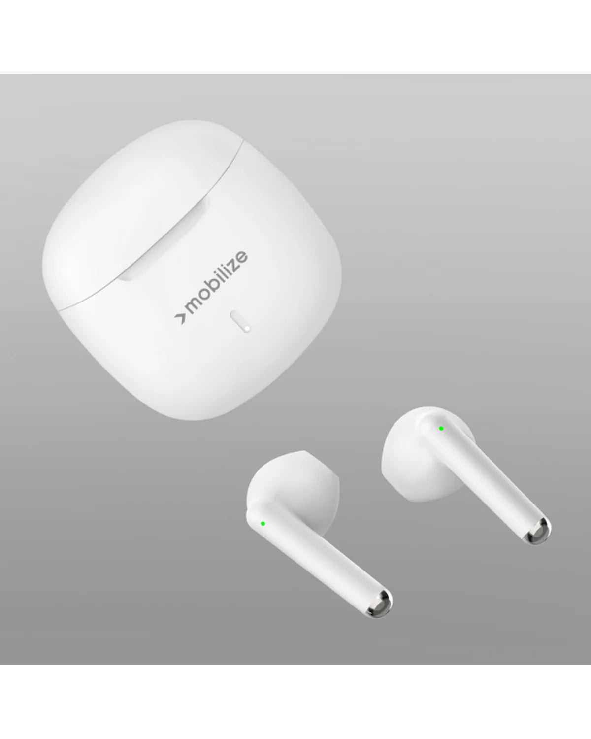Deze witte Mobilize TWS-oordopjes combineren elegantie met slimme functies. Geniet van helder geluid en intuïtieve touchbediening voor muziek en oproepen. Dankzij USB-C snelladen zijn ze in 1,5 uur volledig opgeladen. De magnetische case houdt je oordopjes veilig op hun plek, terwijl spraakassistent-ondersteuning en een ingebouwde microfoon zorgen voor handsfree gemak – altijd en overal.