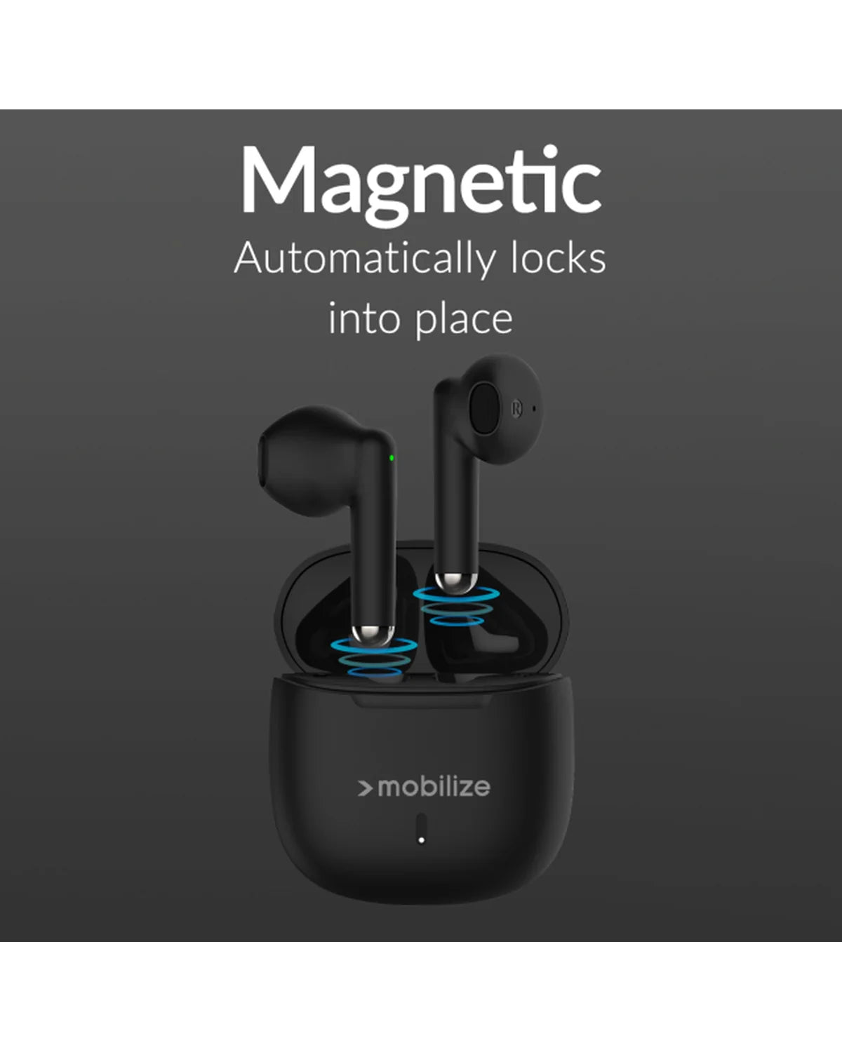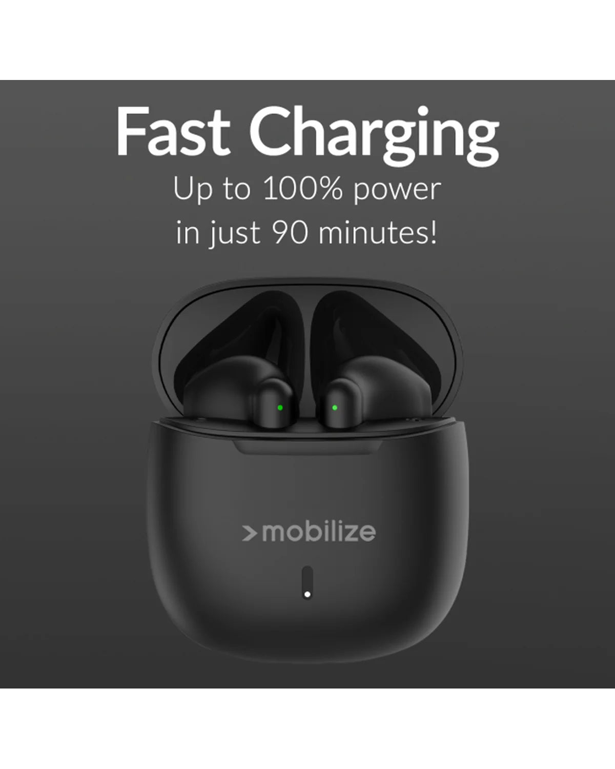 Geniet van draadloos comfort en stijl met deze zwarte in-ear oordopjes van Mobilize. Tot 20 uur luistertijd (met case), Bluetooth 5.3, touchbediening en IPX4-bestendig – ideaal voor onderweg, sport of op kantoor.